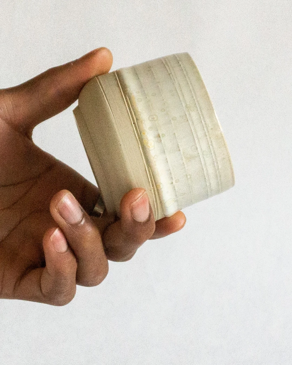 Maak kennis met de STNWRE Cup, een waar bewijs van de kunst van keramiek. Deze met de hand gemaakte beker van eersteklas steengoedklei is niet alleen een drinkschaal, maar ook een ervaring. Of het nu een sterke espresso, een kalmerende matcha of een ijskoude latte is, dit kopje verandert je alledaagse momenten in iets speciaals. Met zijn doordachte vakmanschap en eigentijdse ontwerp is het perfect voor iedereen die waarde hecht aan handgemaakte objecten van hoge kwaliteit.