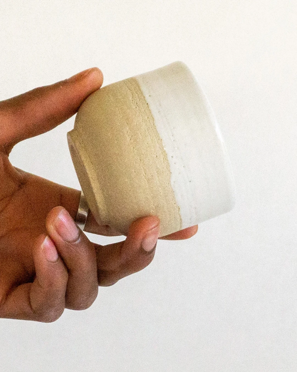 Maak kennis met de STNWRE Cup, een waar bewijs van de kunst van keramiek. Deze met de hand gemaakte beker van eersteklas steengoedklei is niet alleen een drinkschaal, maar ook een ervaring. Of het nu een sterke espresso, een kalmerende matcha of een ijskoude latte is, dit kopje verandert je alledaagse momenten in iets speciaals. Met zijn doordachte vakmanschap en eigentijdse ontwerp is het perfect voor iedereen die waarde hecht aan handgemaakte objecten van hoge kwaliteit.